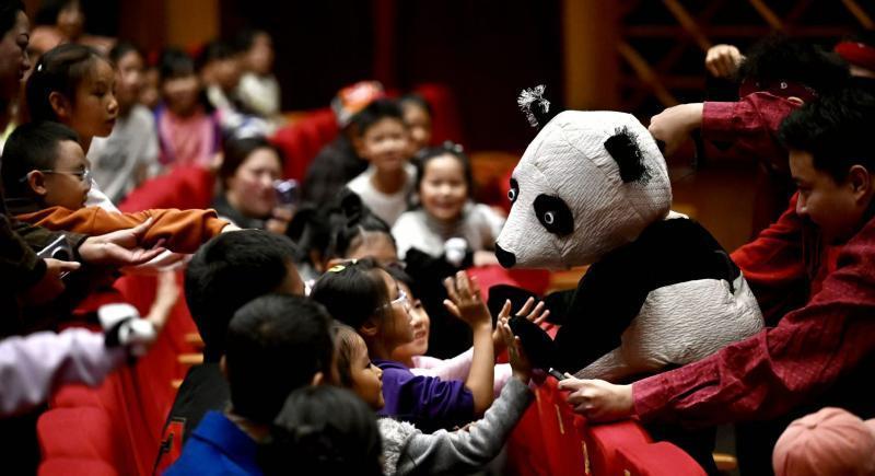 熊猫啊吨与小观众互动