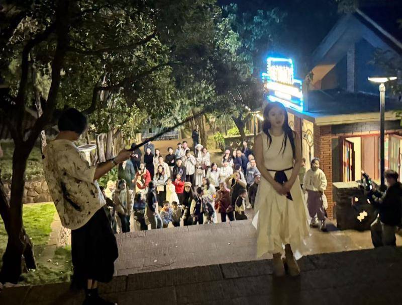 今年4月,包括赵淼在内的几位艺委会成员专程来西昌开了个会,就是希望在戏剧节期间把听涛小镇这条长达七八百米、除了周末都不太有人气的主街完全利用起来。经过一番谋划,戏剧节期间的大部分活动都集中于此,年轻人聚集在这里,摆市集、看街头演出,晚上还围着火把堆跳起锅庄舞,街边的咖啡馆早上7点就开始营业,夜里1点才关门,上午卖咖啡,晚上卖酒,围绕戏剧节的商业业态逐渐形成,夜经济也有了端倪。以往听涛谷对于观众而言,仅仅是看完戏就走了的打卡点,但经过今年业态的整合,经过测算,平均一个人会在这里停留4—8小时,看戏、吃饭、聊天、听歌、拍照,同时逛图书馆、美术馆,甚至还可以陪孩子畅玩亲子乐园。